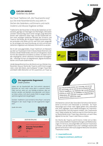 Der Tod und seine schönen Seiten. Seit 2017 gestalten wir mit Begeisterung für das Thema das Fachmagazin „Bestattung“, welches alle zwei Monate erscheint.